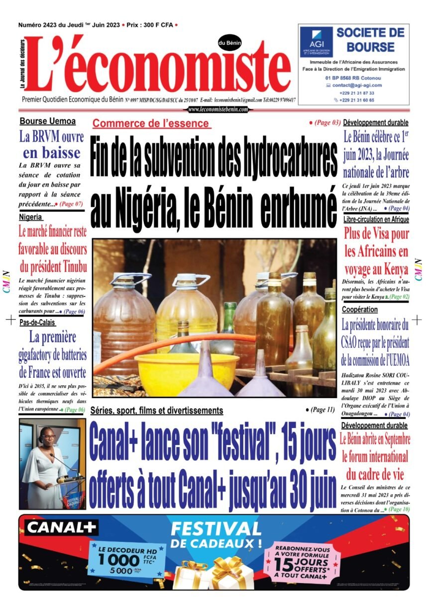 DERNIERES PARUTIONS¨Parution du 01 06 2023 Dernière mise à jour: juin 1, 2023 9:26 am la rédaction Publié juin 1, 2023 Partager PARTAGER Vous Aimerez Aussi Parution du 11 01 2023 Parution du 02 02 2023 Parution du 23 01 2023 Parution du 17 08 2023 Parution du 13 02 2023 Partager Cet Article Facebook Pinterest Whatsapp Whatsapp LinkedIn Télégramme E-mail Imprimer Article Précédent Développement durable : Le Bénin abrite en Septembre le forum international du cadre de vie Prochain Article Forum National sur les Objectifs de Développement Durable : Des assises sur les ODD pour une croissance inclusive au Bénin RechercherRechercherDerniers articlesBRVM : Une Séance Entre Hausses et ReplisIntégration numérique et création d’emplois: La Banque mondiale alloue 137 millions de dollars au Bénin et à deux autres paysEducation financière: Le chaînon faible de l’inclusionPolémique autour de certains bouchons de l’eau minérale FIFA : La société E.T.E clarifie et rassure ses consommateursConseil des ministres au Bénin : principales décisions du mercredi 11 mars 2026CommentairesAucun commentaire à afficher.