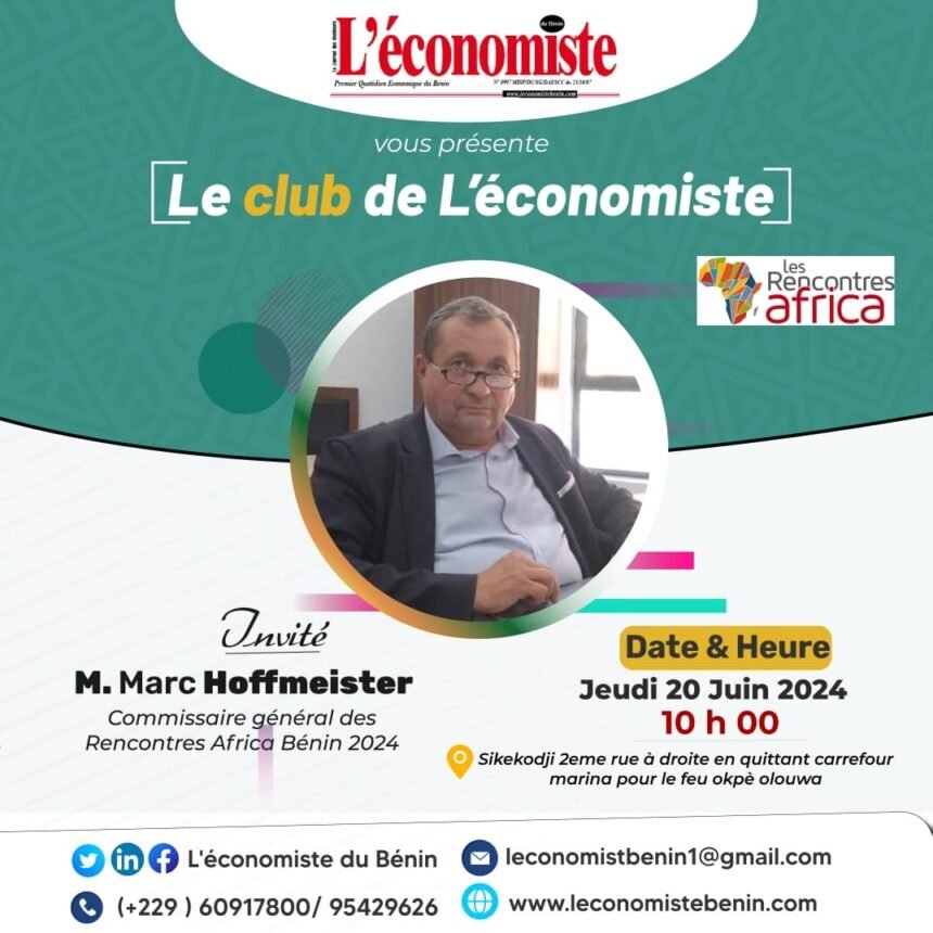 Organisées chaque année pour valoriser les opportunités d’investissement sur le continent africain, les ‘’Rencontres Africa’’ se tiendront à Cotonou, du 09 au 11 juillet 2024. En prélude à l’évènement et dans le cadre des préparatifs, Marc Hoffmeister, Commissaire général des Rencontres Africa échangera avec la presse et les acteurs économiques béninois sur le Club de L’économiste ce jeudi 20 juin 2024.