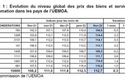 Prix à la consommation dans l’Uemoa :L’inflation chute de 5% au Bénin en février 2022