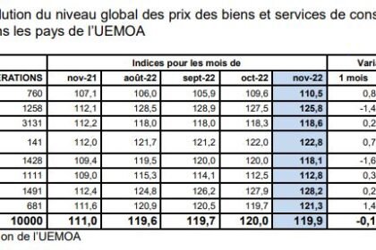 Consommation dans l’Uemoa/novembre 2022 : Hausse de 0,8% des prix au Bénin, contre 0,1% dans l’Union
