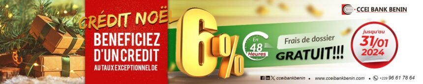 Pour répondre à la demande grandissante de notre clientèle, CCEI BANK BENIN est ravi de vous annoncer la prorogation de sa campagne de crédit de Noël ; offrant ainsi, plus d’opportunités à son aimable clientèle de réaliser leurs rêves festifs.