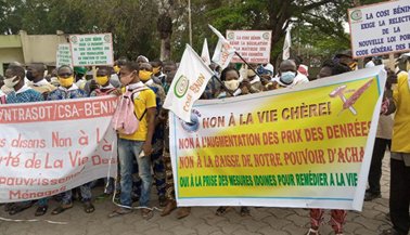 « Non à la vie chère », « Non aux impôts qui asphyxient les travailleurs » et plusieurs autres formules. Mobilisés nombreux le vendredi, les travailleurs béninois ont signifié leur ras le bol contre la cherté galopante de la vie au Bénin. La quasi-totalité des syndicats et confédérations y est représentée notamment avec leurs secrétaires généraux, Anselme Amoussou de la Csa-Bénin, Noël Chadaré de la Cosi-Bénin, Moudachirou Bachabi de la Cgtb, Appolinaire Affewé de l’Unstb sans oublier Adolphe Houssou, le porte-parole de l’intersyndicale des syndicats de la santé. Initiative de la Confédération des syndicats autonomes (Csa-Benin), les organisations syndicales ont dénoncé durant cette marche, « L’inflation est de plus en plus insupportable pour les populations ; les prix du transport, de l’énergie, des produits pharmaceutiques et des produits de première nécessité ont atteint des proportions jamais égalées dans notre pays ; le Smig est au même niveau depuis 2014; la hiérarchisation est refusée aux travailleurs sans raisons valables ; l’augmentation des salaires annoncée depuis le mois de décembre 2021 est toujours attendue sur les fiches de paie ; mais les salaires politiques sont ajustés par anticipation depuis 2016; le code général des impôts ne reflète pas le mandat social tant annoncé ». Ainsi, ils entendent exiger «exiger des autorités gouvernementales, des mesures urgentes et adéquates contre la vie chère et le mal-être des populations ». Selon Anselme Amoussou, secrétaire général de la Csa-Benin intervenu au cours du mouvement de protestation, « La vie n’a jamais été aussi chère au Bénin et les pauvres n’ont jamais été aussi nombreux ». il a mis à l’index le taux de pauvreté qui s’est dégradé passant de 33 % en 2016 à plus de 45% en 2021. Les licenciements et autres pratiques devenus le lot quotidien du peuple ne cessent non plus d’enfoncer le clou. A son tour, « nous assistons à une politique de fiscalité sauvage. La fiscalité n’a jamais développé un pays » a déploré le secrétaire général de la Confédération générale des travailleurs du Bénin (Cgtb), Moudachirou Bachabi et au secrétaire général de la Cosi-Benin, Noël Chadaré la situation est suffocante et l’indifférence du gouvernement est inadmissible. Il s’est surtout intéressé au salaire des travailleurs devenu insignifiant ; « Nos salaires ne sont plus des salaires, c’est plutôt des ça à l’air » a-t-il déclaré. C’est aussi l’avis des différents secrétaires généraux qui s’en sont remis au gouvernement et en ont appelé à une réaction rapide.