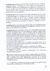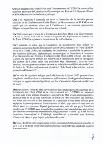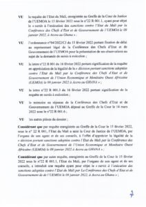 Par Ordonnance n°6/2022/CJ du 24 mars 2022, la Cour de justice de l’Union économique et monétaire ouest-africaine (UEMOA) suspend l’exécution des sanctions contre le Mali. Dans le dispositif de l’Ordonnance, la Cour de justice s’est déclarée compétente et a jugé recevable la requête du Mali. Après un jugement contradictoire où le Mali s’est fait représenter par le Directeur général du contentieux d’Etat assisté de plusieurs avocats du Barreau malien, et où la Conférence des Chefs d’Etat et de gouvernement de l’UEMOA s’est faite représenter par Oumarou Yaye, Conseiller juridique du Président de la Commission et pour conseil Maître Issa Sama, avocat inscrit au barreau du Burkina Faso, la sentence de la Haute juridiction a été en faveur du Mali. Cette suspension ouvre de bonnes perspectives économiques pour l’espace Uemoa et la CEDEAO.