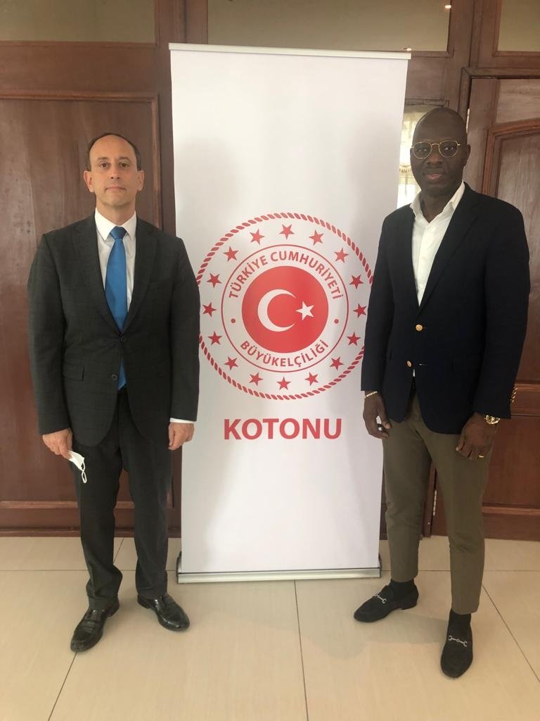 Plusieurs sujets importants ont conduit le Président de la Fédération Nationale des Associations et Groupements d’Industriels du Bénin (FENAGIB) au cabinet de l’Ambassadeur de la République de Turquie près le Bénin. Il s’agit de : la coopération bilatérale entre la FENAGIB et les faîtières d’industriels Turques; faire naître une certaine confiance pour faciliter les formalités d’obtention du Visa turc pour les industriels membres de la FENAGIB ; créer et rendre fonctionnelles, les relations institutionnelles entre l’Ambassade de la Turquie et la FENAGIB. A cette occasion, l’ambassadeur Onur ÖZCERI, a exprimé l’entière disponibilité de l’ambassade pour ces trois points de coopération et a rendu disponibles, quelques noms de faîtières industrielles turques (telles que la DEIK, la MUSIAD et la TUSIAD) ainsi que des contacts directs dont celui du secrétariat francophone de l’une des faîtières, à même d’écouter et de traiter avec célérité, les éventuelles requêtes exprimées par la FENAGIB pour des retours certains et sans faille.