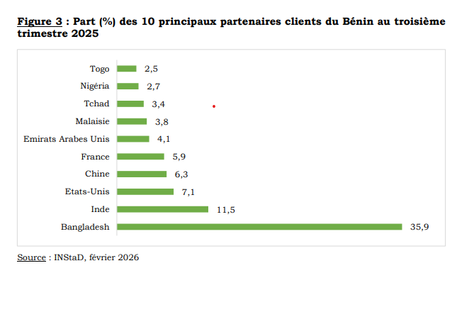 Le Bangladesh est le principal partenaire client du Bénin, avec 35,9% de la valeur globale des ventes à l’extérieur au cours du trimestre sous revue.