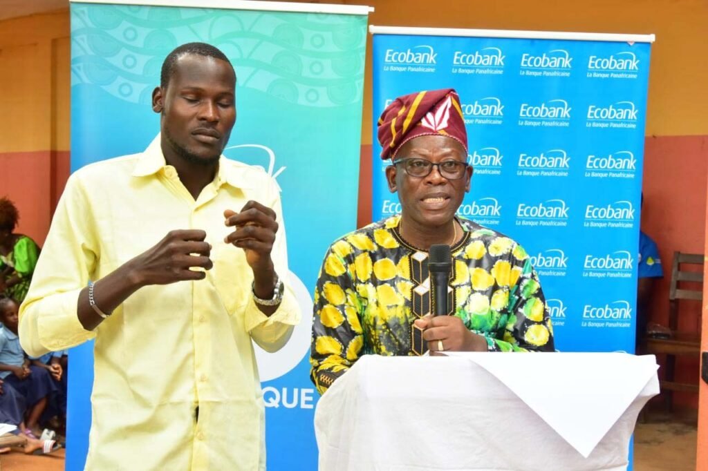 La filiale béninoise du Groupe bancaire panafricain Ecobank était, le vendredi 7 novembre 2025, dans les locaux du Centre d’Accueil, d’Éducation et d’Intégration des Sourds (CAEIS) de Louho à Porto-Novo. Cette visite s’inscrivait dans le cadre de la Journée Ecobank 2025, à sa 13ᵉ édition, au cours de laquelle la banque a offert un chèque de plus de six millions de francs CFA au CAEIS pour l’installation d’une salle multimédi au profit des pensionnaires.
