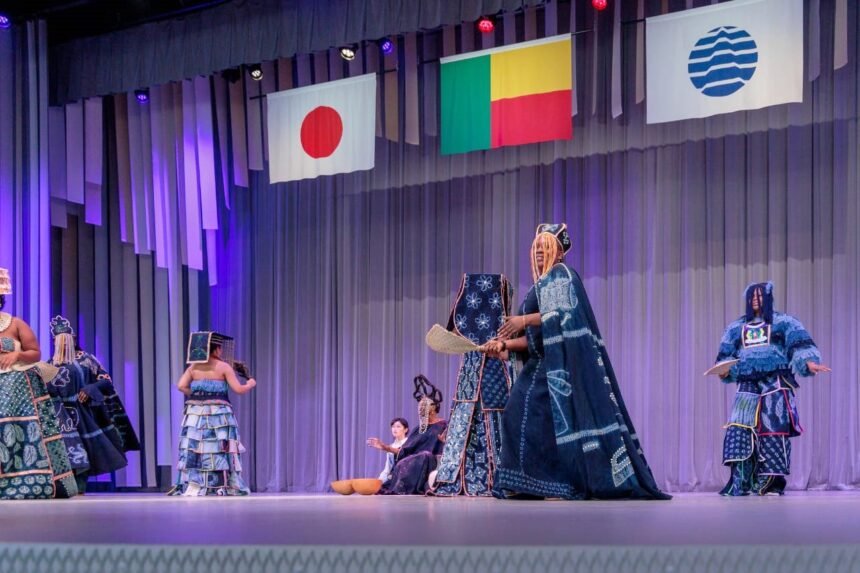 La présentation de la collection Couleur Indigo, avec ses créations textiles raffinées et ses couleurs vibrantes, a été magnifiée par la voix puissante de l’artiste Pépé Oleka. Le spectacle s’est ensuite poursuivi avec le groupe Les Pépit’Arts, qui a offert un enchaînement de performances vivantes, enrichi par l’intervention du Japonais Chudo Saito. Cette séquence artistique a ainsi mis en évidence la richesse et la diversité du patrimoine créatif du Bénin, tout en démontrant sa capacité à s’inscrire dans une dynamique d’échange international.