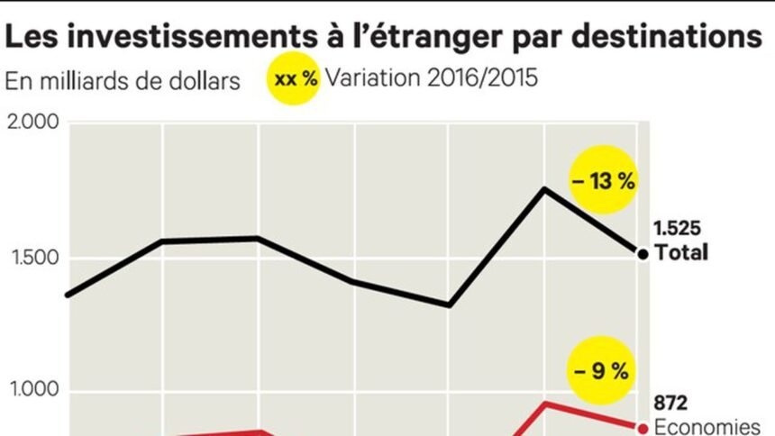 « Après une augmentation de 59% au 1er trimestre de 2022, ces flux ont chuté de 38% au 2e trimestre, principalement en raison des mouvements des dettes entre les entreprises, tandis que les entrées de capitaux propres et les bénéfices réinvestis ont augmenté », a expliqué l’OCDE. Les flux sortants de la zone OCDE ont augmenté pour atteindre 838 milliards USD, le niveau semestriel le plus élevé depuis 2013.
