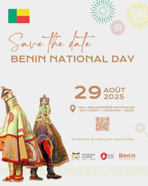 Le 29 août, le Bénin invite le monde à vivre une expérience exceptionnelle au cœur de l’Expo Osaka 2025. La Journée Nationale n’est pas seulement un symbole diplomatique : elle se veut un manifeste de créativité, de diplomatie culturelle et d’ouverture économique. Investisseurs, décideurs, créateurs, médias et grand public sont conviés à franchir les portes du Pavillon du Bénin pour découvrir un Monde de Splendeurs.