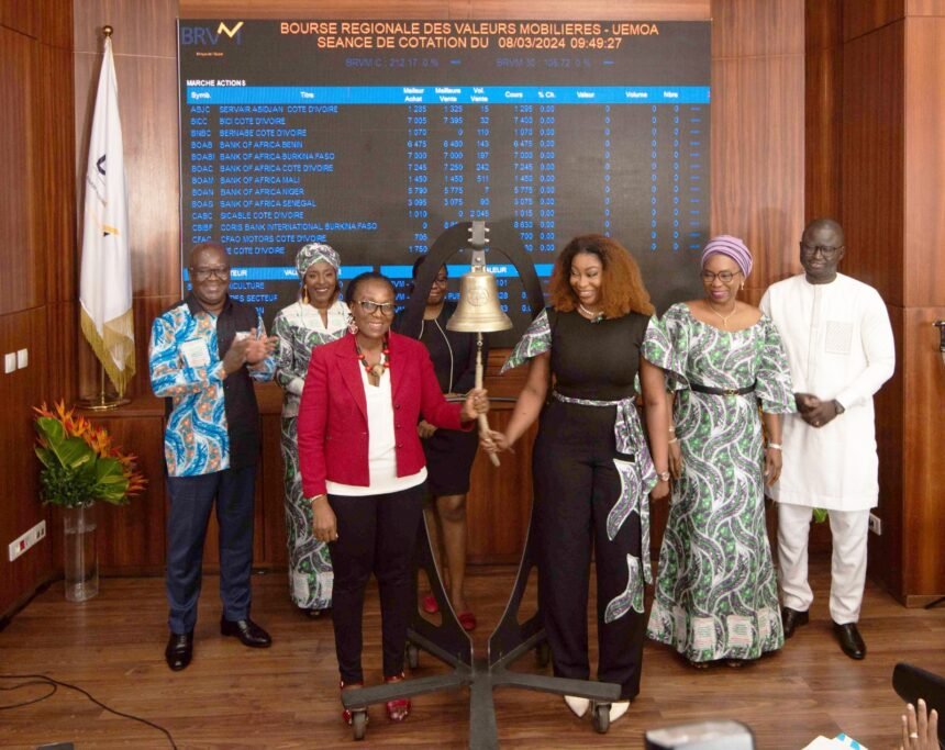 Célébrer la femme ; c’est célébrer la vie. Reconnaitre ses droits ; c’est perpétuer la vie ». Cela fait maintenant 10 ans que les places boursières se sont engagées à sonner leurs cloches à travers le monde pour la promotion de l’égalité du genre sous le concept « Ring the Bell for Gender Equality ». Cette année, ce n’est pas moins de 115 bourses qui vont sacrifier à cette désormais tradition. A la BRVM, les 8 mars passent, mais ne se ressemblent pas. A chaque fois, diverses personnalités font l’honneur de venir vivre avec la BRVM cette journée spéciale et partager leurs expériences avec d’autres femmes. Madame Kadhy TOURE, Directrice Générale de BROWN Angels, Animatrice Tv, Productrice et Actrice, a été la Keynote Speaker du jour. Elle a partagé sa riche expérience de la vie et de l’entreprenariat, sa passion pour les industries créatives ainsi que sa volonté de contribuer à l’éducation financière des femmes en Côte d’Ivoire et dans toute la sous-région. Quant à Madame Setcheme Jeronime MONGBO, nouvelle Directrice d’ONU Femmes en Côte d’Ivoire, elle a fait l’honneur de venir partager sa vision sur l’importance cruciale de l’investissement dans les femmes. Pour elle, « la célébration de la Journée Internationale de la Femme est une opportunité pour le monde entier d’évaluer les progrès, les échecs, les défis, les opportunités manquées ou à venir, les partenariats possibles dans le domaine précis des droits des femmes pour faire avancer nos pays ». Elle a également plaidé pour un monde où chacun trouve sa chance et met en œuvre toutes ses potentialités pour le développement durable et équitable. A l’occasion de cette journée, le Directeur Général de la BRVM, Dr Edoh Kossi AMENOUNVE a salué les qualités exceptionnelles de la Femme, la Mère, l’Epouse, qui est « la trésorière non rémunérée » ou encore « le grenier intarissable » de la famille. Madame Kadhy TOURE et les autres panelistes, Mesdames Manon COULIBALY KARAMOKO, Présidente du Women Investment Club (WIC) Côte d’Ivoire et Corinne Houmou Ormon, Directrice de l’Antenne Nationale de Bourse de Côte d’Ivoire de la BRVM, ont entretenu les participants sur la problématique de l’épargne-investissement pour les femmes, les barrières à surmonter, les bénéfices qu’elles peuvent en tirer et les retombées positives pour les économies de nos pays.