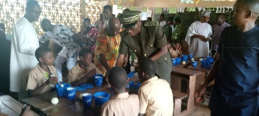 « Investir dans l’alimentation scolaire basée sur la production locale afin de transformer les systèmes éducatifs pour un avenir inclusif et prospère en Afrique ». Tel est le thème de la 9ème édition de la Journée Africaine de l’Alimentation Scolaire. Démontrer l’importance de l’alimentation scolaire basée sur la production locale. C’est l’objectif principal de cette célébration. Pour le Directeur exécutif de GRAIB ONG, Brice S. KOKO, le thème de cette édition interpelle tous les acteurs du monde éducatif et les producteurs agricoles qui doivent renforcer leur interaction pour que l’alimentation scolaire soit basée sur la production locale. Le DDMP-Couffo, Albert HOUNTONDJI dans ses dires remercie tous les acteurs pour les efforts consentis en matière d’alimentation scolaire. Poursuivant, il dévoile que le gouvernement à travers ce programme a pour ambition de garantir une alimentation scolaire durable à base de produits locaux enrichis pour tous les enfants inscrits dans les écoles, une stratégie efficace pour augmenter le taux de scolarisation, réduire l’absentéisme et améliorer la sécurité alimentaire et nutritionnelle des enfants. L’Assistant Programme de l’antenne Couffo du PAM, Fabrice HOUSSOU souligne dans son intervention que le Programme Alimentaire Mondial intensifie depuis 2021 l’achat des vivres au niveau local et renforce l’achat direct auprès des petits producteurs pour approvisionner les écoles. En abondant dans le même sens, le Maire de la commune de Klouékanmè, Dieu-Donné GBEDJEKAN exprime qu’à travers ce thème, la communauté internationale encourage la promotion de la consommation locale à travers les cantines scolaires. « Nous sommes invités à cet effet à encourager les agriculteurs à produire et à conserver sain les vivres tout en respectant les conseils des spécialistes agricoles » a-t-il dit. Procédant au lancement officiel de la célébration, le Préfet du département du Couffo, salue le gouvernement béninois et le PAM pour leurs initiatives dans la promotion et la consommation des produits locaux. Il a largement profité de cette occasion pour sensibiliser tous les acteurs et parents sur le rôle important que joue les cantines scolaires dans l’éducation des enfants. » Pour booster l’éducation, donc le développement il faut nécessairement donner à manger aux enfants », a-t-il souligné. La délégation a visité la cuisine de l’école, avant de servir un repas chaud aux apprenants et a fait la visite des stands.