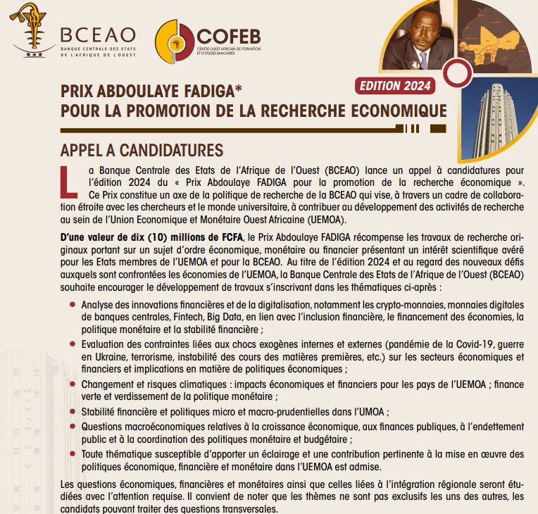 l’édition 2024 du « Prix Abdoulaye FADIGA pour la promotion de la recherche économique ».