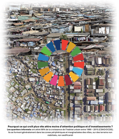 la réhabilitation des quartiers informels existants qui ont accueilli la majorité de la croissance de l’habitat urbain, entre 1990 et 2015, selon le Club du Sahel et de l’Afrique de l’Ouest (CSAO/OECD),