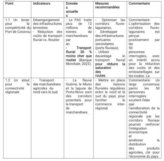 Tableau :1 L’importance des corridors fluvio-lagunaires dans la logistique portuaire du Bénin