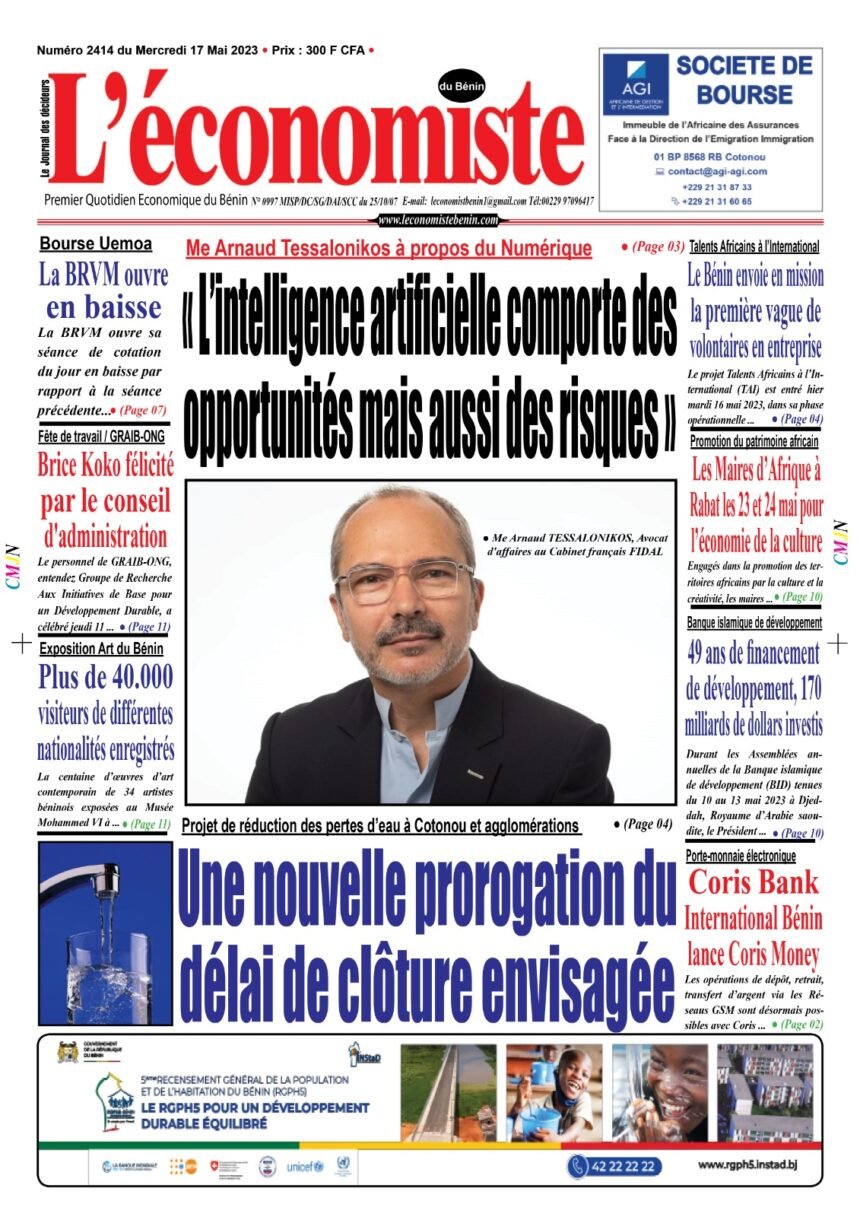 DERNIERES PARUTIONSParution du 17 05 2023 Dernière mise à jour: mai 17, 2023 9:19 am la rédaction Publié mai 17, 2023 Partager PARTAGER Vous Aimerez Aussi Parution du 05 10 2023 Parution du 03 08 2023 Parution du 05 06 2023 Parution du 08 02 2023 Parution 27 10 2022 Partager Cet Article Facebook Pinterest Whatsapp Whatsapp LinkedIn Télégramme E-mail Imprimer Article Précédent Projet de réduction des pertes d’eau à Cotonou et agglomérations : Une nouvelle prorogation du délai de clôture envisagée Prochain Article La ZLECAF : futur système de prospérité régionale et d’intégration économique en Afrique ? RechercherRechercherDerniers articlesOpportunité d’étude à l’extérieur: 16 Bourses internationales offertes aux étudiantsEntrepreneuriat au Bénin: BIO Invest engage 3 millions d’euros dans Vital Finance pour les PMEMarché des titres publics: 8ᵉ édition des Rencontres du Marché des Titres Publics (REMTP), les 27et 28 à LoméStabilité macroéconomique: Un taux de croissance de 6,9 % dans l’UEMOA à fin 2025BRVM : Une Clôture Positive Sous l’Influence des Valeurs Bancaires et IndustriellesCommentairesAucun commentaire à afficher.