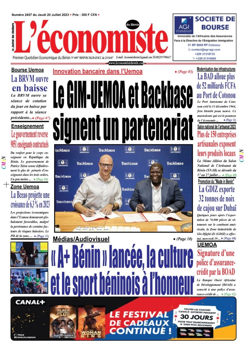 DERNIERES PARUTIONSParution du 20 07 2023 Dernière mise à jour: juillet 20, 2023 9:16 am la rédaction Publié juillet 20, 2023 Partager PARTAGER Vous Aimerez Aussi Parution du 17 08 2023 Parution du 17 01 2023 Parution du 06 06 2023 Parution du 03 01 2023 Parution du 16 12 2022 Partager Cet Article Facebook Pinterest Whatsapp Whatsapp LinkedIn Télégramme E-mail Imprimer Article Précédent Nigeria : voici ce que les chefs d’États ont décidé pendant leur rencontre Prochain Article Rapport sur le développement durable pour le Bénin : Progrès « significatifs » dans la réduction des inégalités RechercherRechercherDerniers articlesMarché des Titres Publics: « Le marché secondaire entre dans une véritable phase de régulation », dixit Constantin DABIREClimat des affaires/rapport Business Ready 2025: Le Bénin réalise des prouesses dans l’UEMOA et la CEDEAOMarché financier régional: La BRVM accentue son dynamisme en ce début d’annéeUEMOA : La Cour de justice lève les sanctions contre le MaliAccès à l’Energie au Bénin: 09 mini-réseaux solaires ruraux financés par CEI Africa et Energise AfricaCommentairesAucun commentaire à afficher.