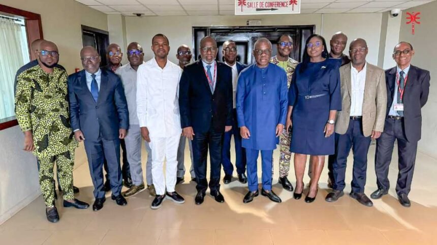 Le vendredi 25 juillet 2025, le Ministre de l’Énergie, de l’Eau et des Mines, José Didier Tonato, s’est entretenu avec le tout nouveau Directeur Général de la SBEE, Hippolyte Ebagnitchie, ainsi qu’avec les Directeurs centraux de la Société. Cette rencontre avait pour but de mettre l’accent sur les urgences et les priorités du secteur.