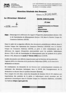 Dans le cadre de la migration effective des documents préalablement délivrés dans le Guichet Unique des Opérations du Commerce Extérieur (GUOCE) vers le Guichet Unique du Commerce Extérieur (GUCE), la Direction générale des douanes a lancé à compter du 1er février 2022, la délivrance du rapport d’inspection phytosanitaire (licence 152) et de l’autorisation de débarquement (licence 154) dans le GUCE.