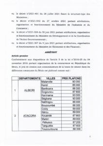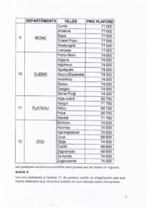 C’est par arrêté interministériel Année 2022/MIC/MDC/MEF/DC/SGM/DCI/SA/033SGG22 du 17 Juin 2022 portant fixation des prix de cession du ciment aux consommateurs en République du Bénin et conformément aux dispositions de l’article 05 de la loi N° 2016-25 du 04 novembre 2016 portant organisation de la concurrence en République du Bénin, que le gouvernement a décidé de prendre ses responsabilités en ce qui concerne la régulation du prix du ciment. Les coûts ont été ainsi fixés par commune, une décision qui viendra soulager la peine des populations qui n’en peuvent plus face à l’enchère et la cherté de la vie. Découvrez-ici l’intégralité de l’arrêté interministériel.