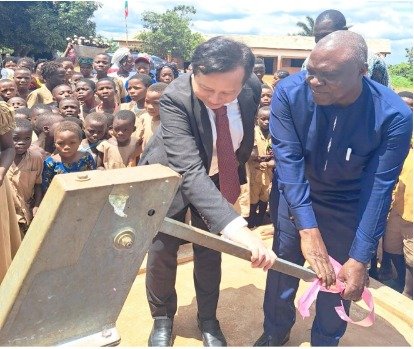 Outre le secteur éducatif, au Bénin, le Japon s’investit pour faciliter l’accès à l’eau potable en milieu rural. C’est dans cet esprit qu’à travers sa représentation au Bénin, et par le programme « Aide aux Projets Locaux », le pays a financé la réalisation de cinq (05) forages équipés de pompes à motricité humaine dans la commune de Zogbodomey. L’initiative vise à améliorer l’accès à l’eau potable dans plusieurs villages et à prévenir les maladies hydriques.