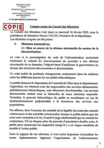 Le conseil des ministres s’est réuni hier mercredi 16 février 2022 pour sa séance hebdomadaire. Elle a permis de prendre une série de décisions dont l’autorisation de collecte et de traitement de données par des systèmes de vidéoprotection. Les relations administratives entre les maires et les préfets ont été revisitées et redéfinies à la même occasion.