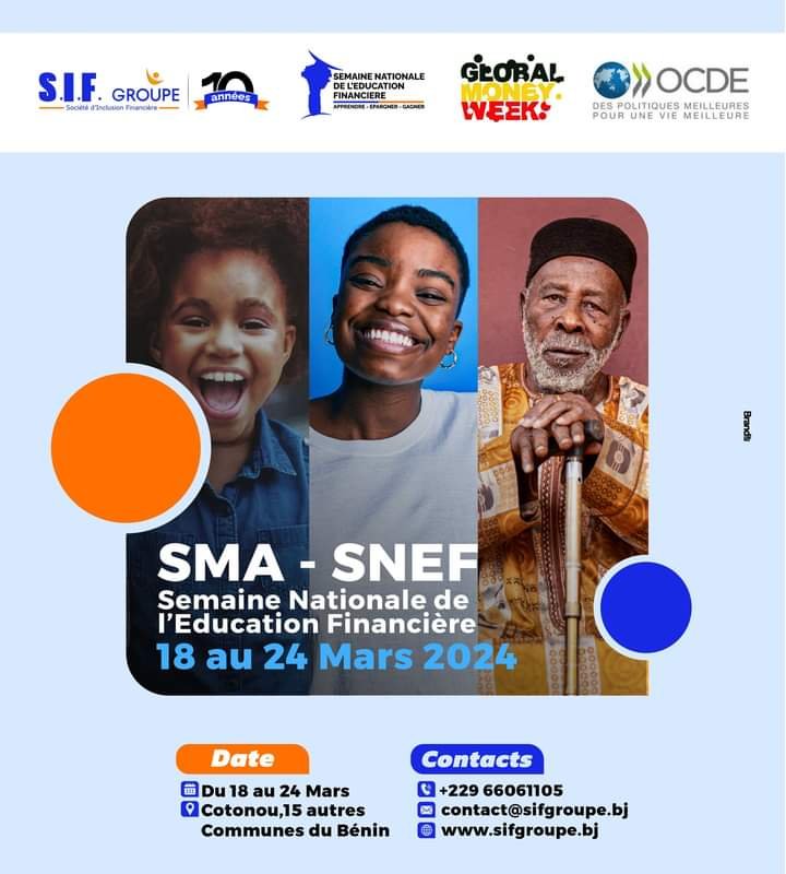 La 6è édition de la Semaine mondiale de l’argent (SMA) couplée avec la première édition de la Semaine Nationale de l’Education Financière (SNEF) aura lieu du 18 au 24 mars 2024 dans près d’une vingtaine de communes béninoises. Initiative de la Société d’inclusion financière (SIF-Groupe), ces manifestations visent le renforcement de la culture et de l’éducation financières des populations.