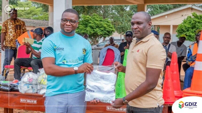 Cette initiative vise à promouvoir la pratique du sport comme vecteur de cohésion, de discipline et de développement personnel, en soutenant notamment l’Association Sportive Les Tigres de Sékou (AST), un acteur local ancré dans la communauté. La cérémonie de lancement et de remise officielle du matériel sportif s’est tenue au Lycée Agricole Médji de Sékou, en présence des représentants de la Fondation ARISE, de SIPI-Bénin, des autorités locales et des bénéficiaires. L’événement a marqué une nouvelle étape du partenariat entre la zone industrielle et ses communautés environnantes. Le lot de matériel remis à l’AST comprend plusieurs jeux de maillots “Made in Benin”, produits au sein des unités de confection textile de la GDIZ, des chasubles d’entraînement, ballons, crampons, chaussettes, protège-tibias et trousses de premiers secours.